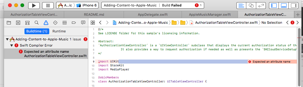 Any idea why this won't build for me, attached is error image (I am not Swift literate yet and Google is no help).