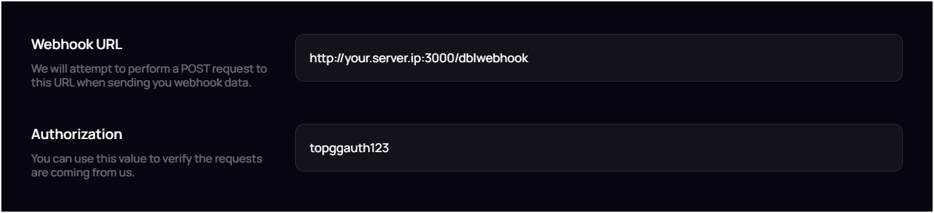 const webhook = new Topgg.Webhook("topggauth123"); // add your Top.gg webhook authorization (not bot token)