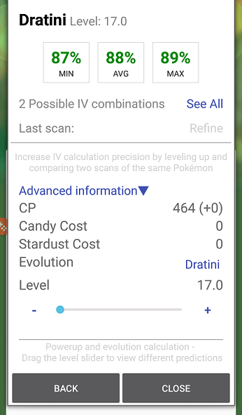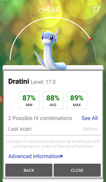Individual Values or IVs are stats that determine how much extra power a Pokémon has in addition to the baseline (0% IV). IVs consists of Attack (affects damage of moves), Defense (affects amount of damage received) and Stamina (affects the amount of HP). IVs are calculated using Pokémon level, CP and HP, using these information we are able to calculate the possible IVs for the Pokémon. IVs are fixed and do not change when powering up or evolving, and multiple power up may help in getting. The higher the IVs, the more Combat Points (CP) the Pokémon will have, compared to another Pokémon of the same species & level.