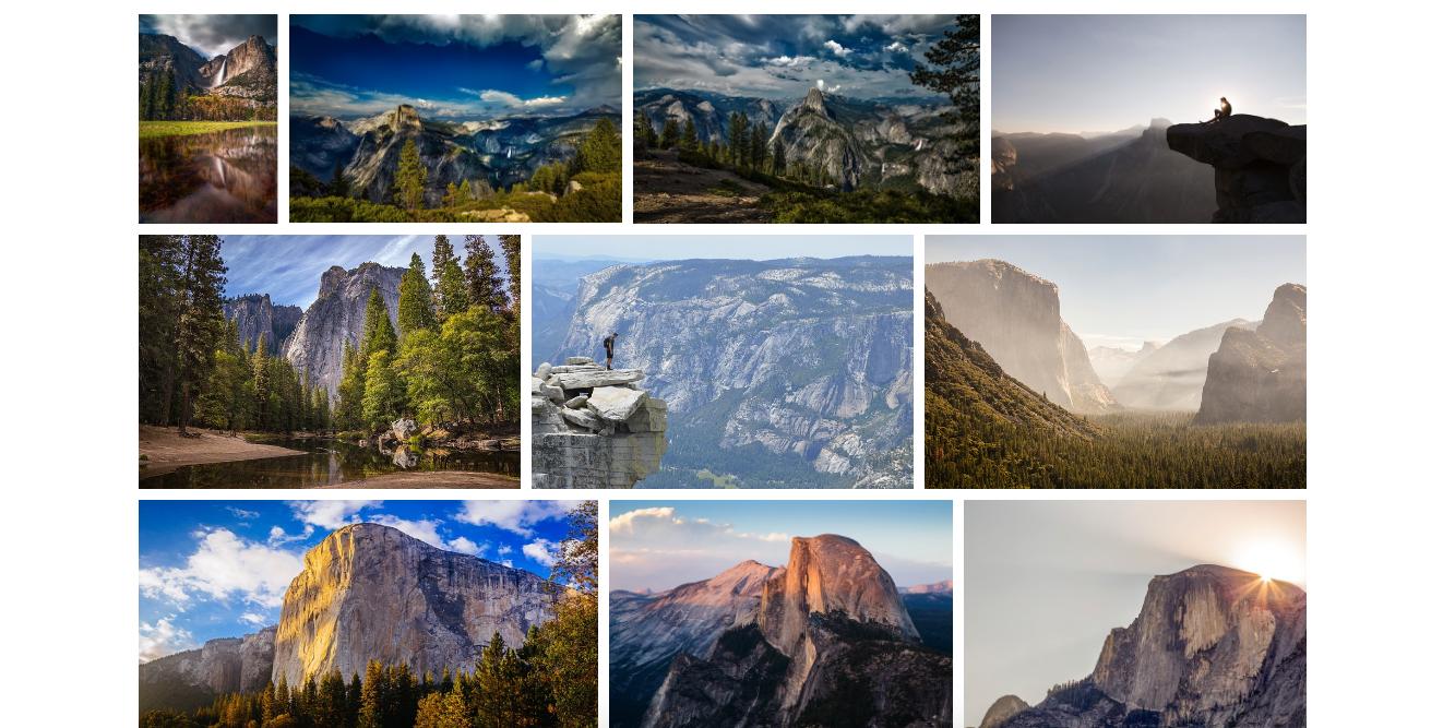 Stock photos are from Pixabay's Developer API and can be found here https://pixabay.com/en/photos/yosemite/.