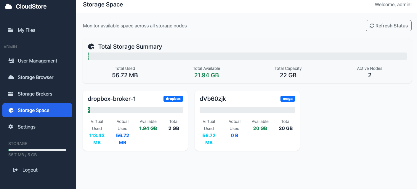 - Real-time Monitoring - Storage usage tracking and broker health monitoring