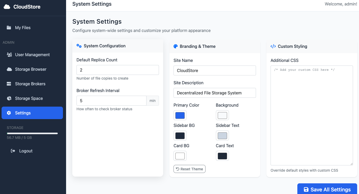 - Storage Limit: Per-user storage quota (default: 5GB)