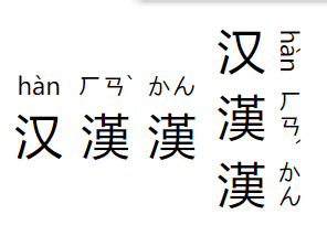横着些时一般没有问题, 竖着的时候就有些区别了, 其中汉语注音还有一点区别: