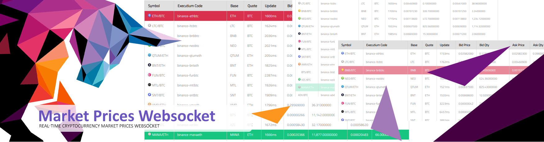 You can view an online example of the javascript websocket at https://marketdata.executium.com/realtime-cryptocurrency-market-prices-websockets/. The code related to the javascript can be found in this repository.