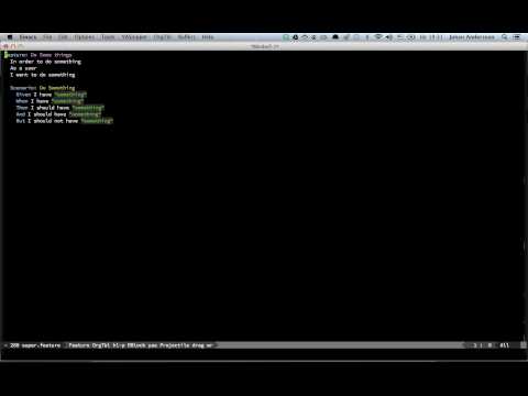 $ cask exec ecukes --only-failingThere are three different kind of steps: Regular, table and py string. Check out Espuds for a comprehensive collection of steps.