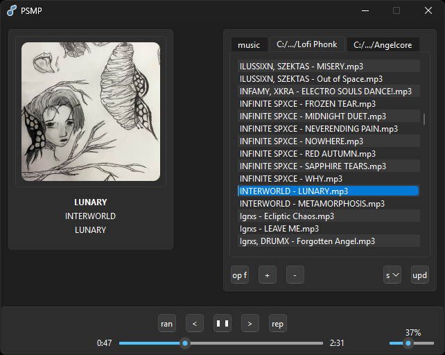PSMP is an audio player application provides a clean and intuitive interface for playing your audio files. Built with Python and the Qt for Python framework (PySide6), it offers a cross-platform solution for audio playback.