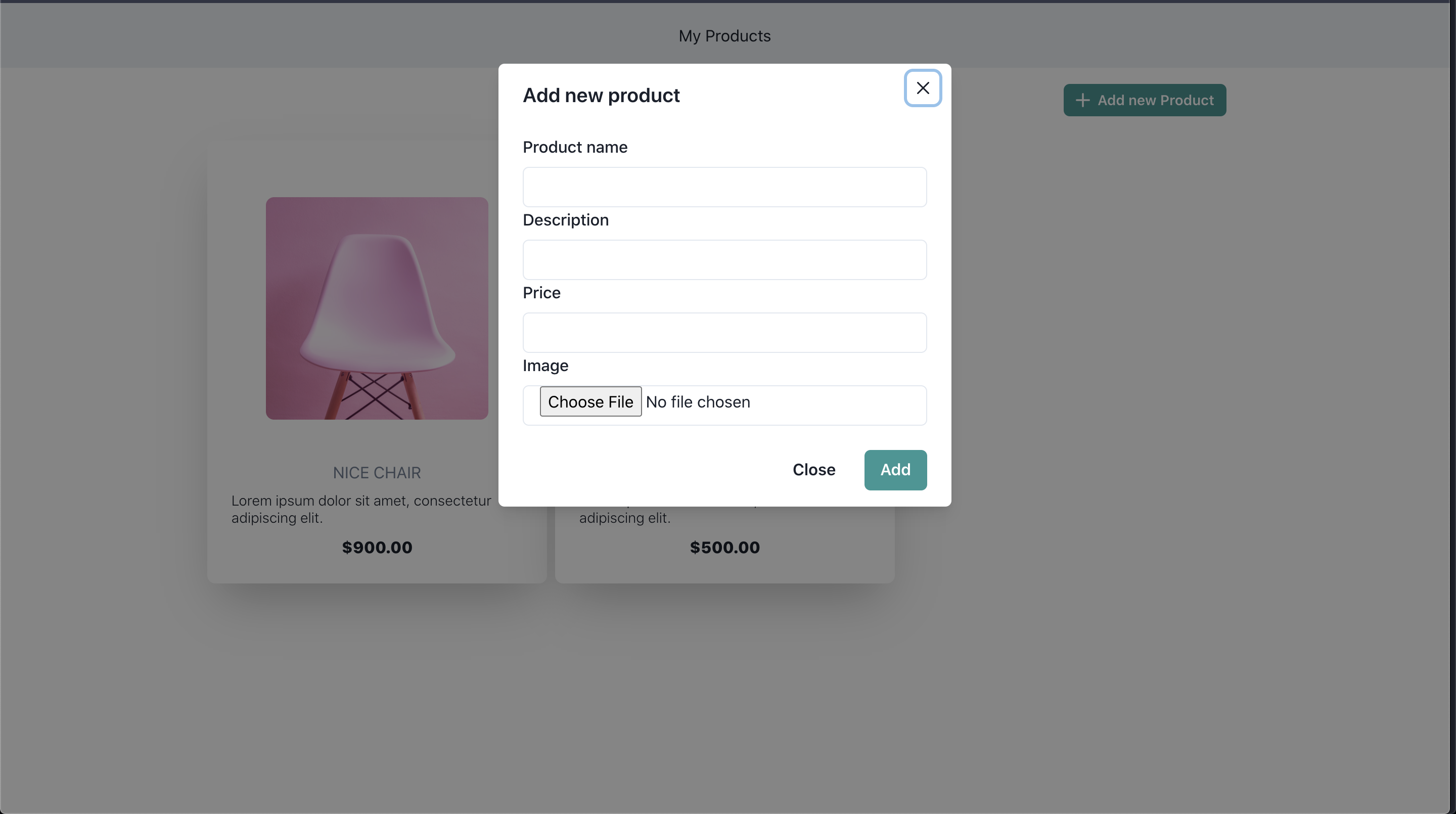 My Products is a web app for managing products.