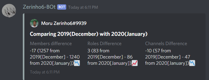 The command will have 2/3 arguments: operation, year and month. But, the first time you execute the command, if you have MANAGE_GUILD permission, it'll ask if you want to enable it to store the amount of members, channels and roles. Each month it would store the those datas in cache and then the user would acess the data via the arguments.